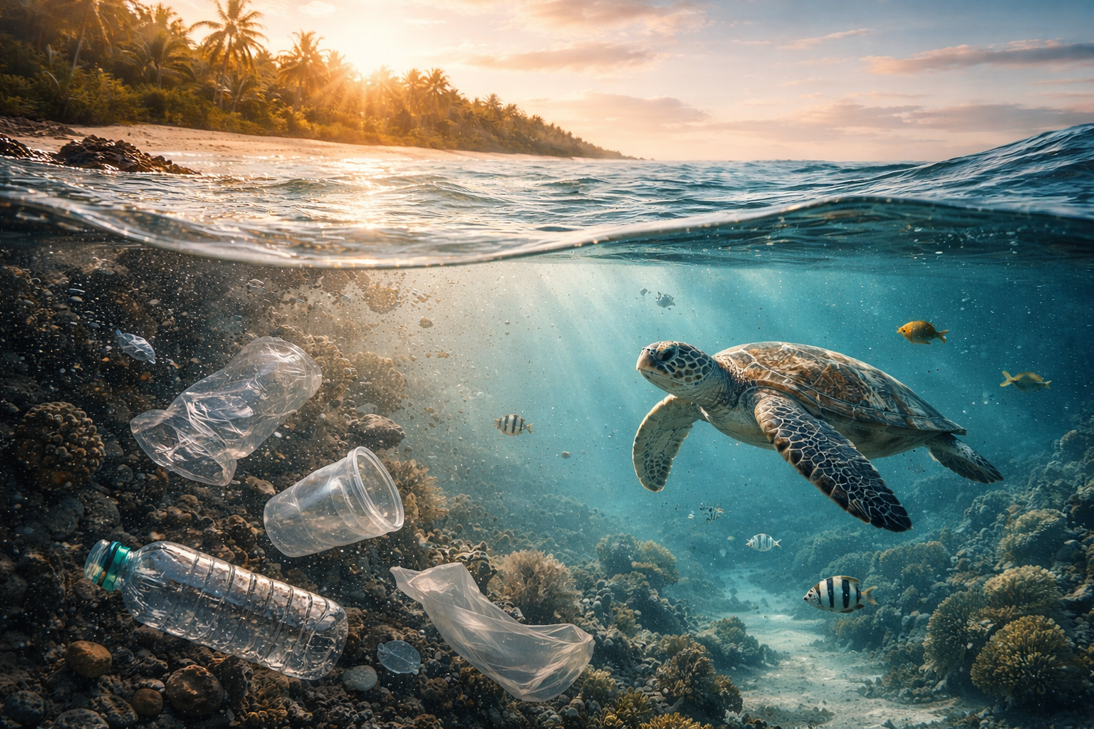 - Plastic waste harms marine ecosystems and endangers aquatic life